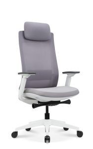 This is a high-backed executive chair designed for comfort and modern professionalism, featuring a sleek, fully upholstered silhouette. The chair offers a tall, contoured backrest and a wide seat, both generously padded and covered in a smooth, high-grade material with subtle stitched detailing that runs horizontally. The structure is characterized by elegant, polished metallic supports that form the distinctive, curved armrests and frame the backrest, giving the piece a robust yet sophisticated appearance. It is mounted on a highly polished five-star castor base, equipped with a mechanism for smooth height adjustment and reclining functionality, making it an ideal choice for high-level office use.